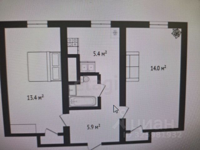 - Общая площадь 44 м2