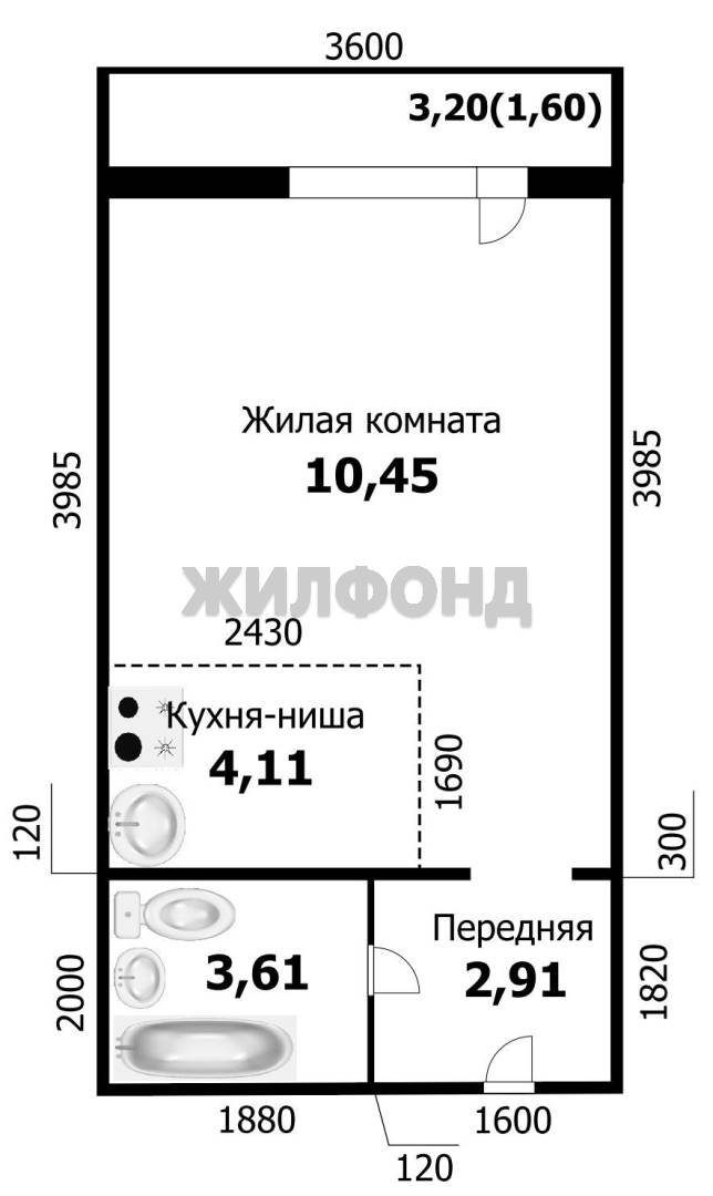 - Площадь кухни: 4.1 м2
