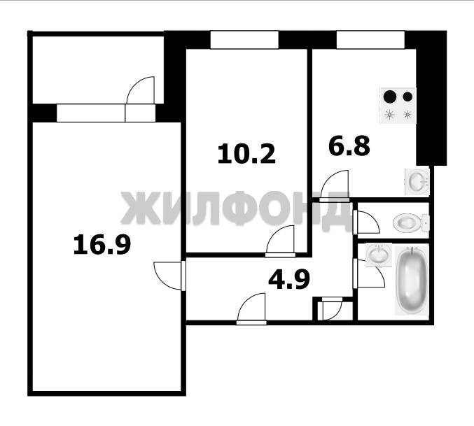 - Площадь кухни: 6.8 м2