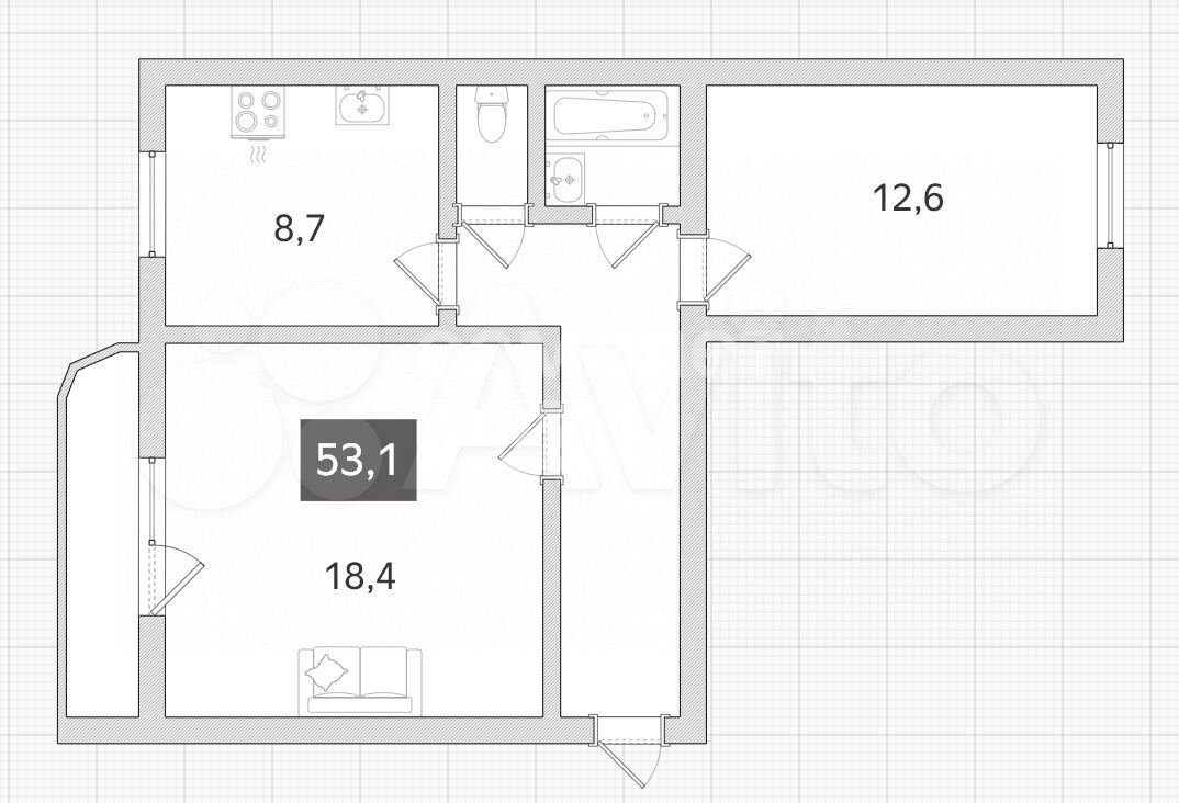 - Общая площадь: 53.1 м2