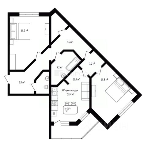 - Общая площадь: 78.4 м2