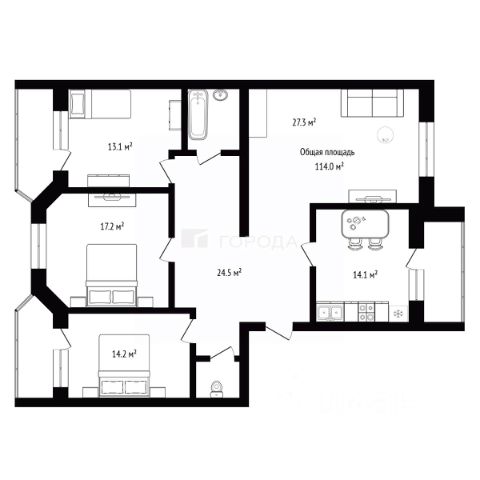 - Общая площадь: 123 м2