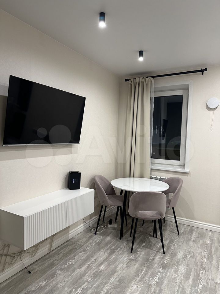 Продается стильная студия с дизайнерским ремонтом в монолитно-кирпичном доме. Просторная лоджия с видом на улицу создает ощущение простора и уюта. В квартире выполнен качественный ремонт с использованием современных материалов, включая теплые полы. Кухня оборудована всей необходимой техникой, включая холодильник, и имеет современный дизайн с встроенной мебелью. В совмещенном санузле установлена современная сантехника и стиральная машина. Дом оснащен консьержем и тремя пассажирскими лифтами, а также грузовым лифтом. Имеется подземная парковка и спортивная площадка во дворе. Спокойные соседи.