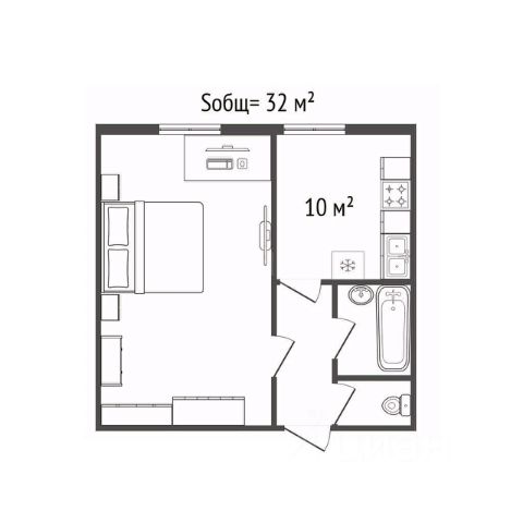 - Общая площадь: 32 м2