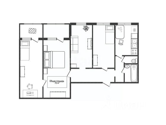 - Общая площадь: 70 м2
