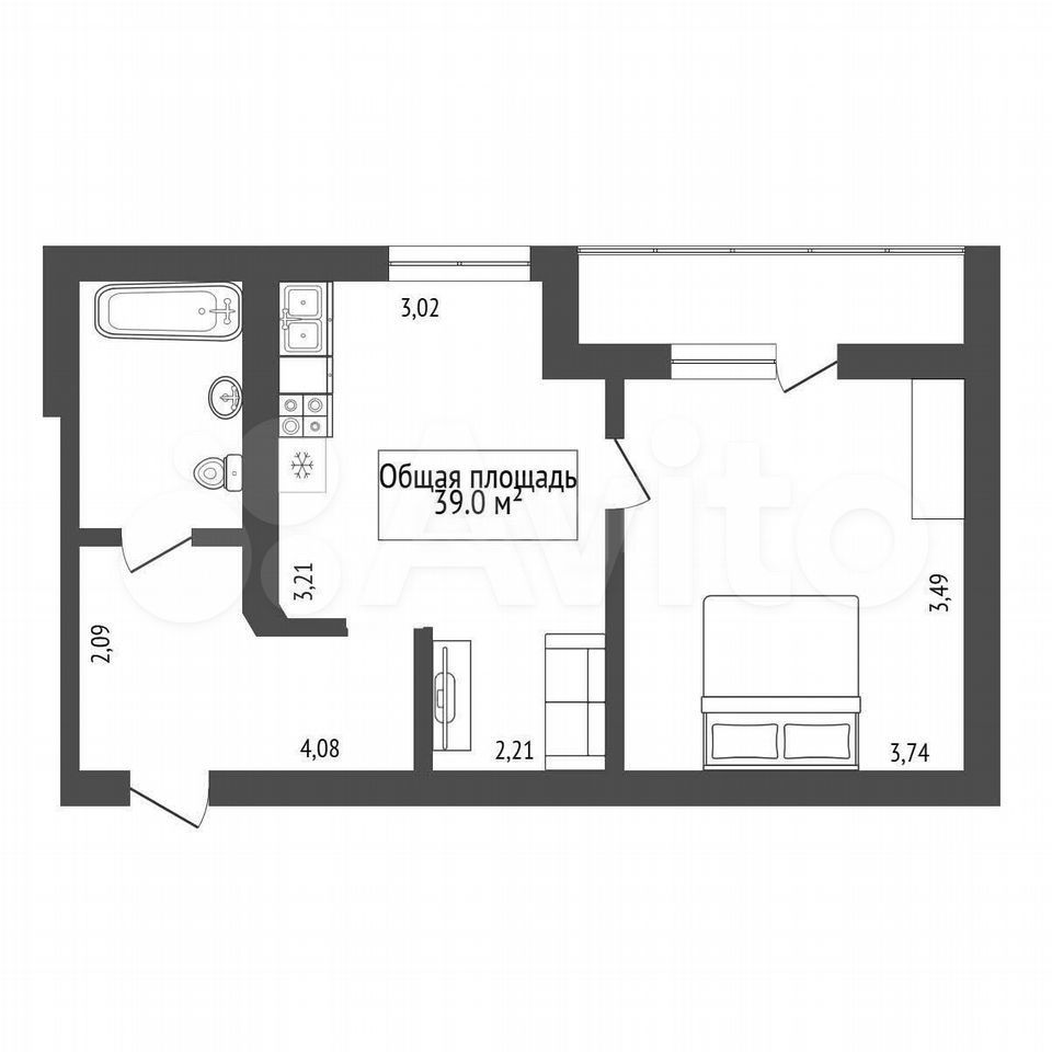 - Общая площадь: 39 м2