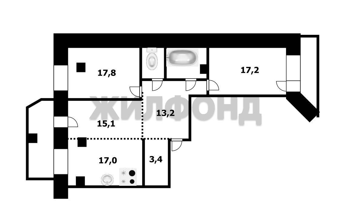- Площадь кухни: 17 м2