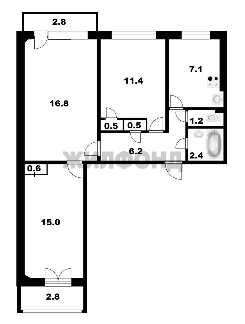 - Площадь кухни: 7.1 м2