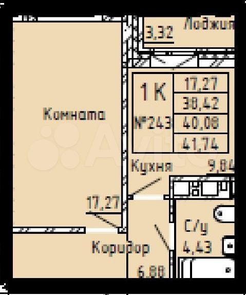- Общая площадь: 41.7 м2
