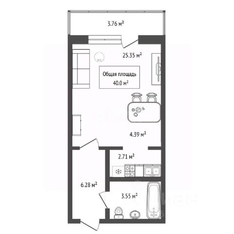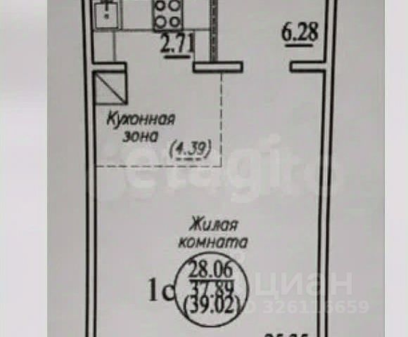 - Общая площадь: 39.3 м2