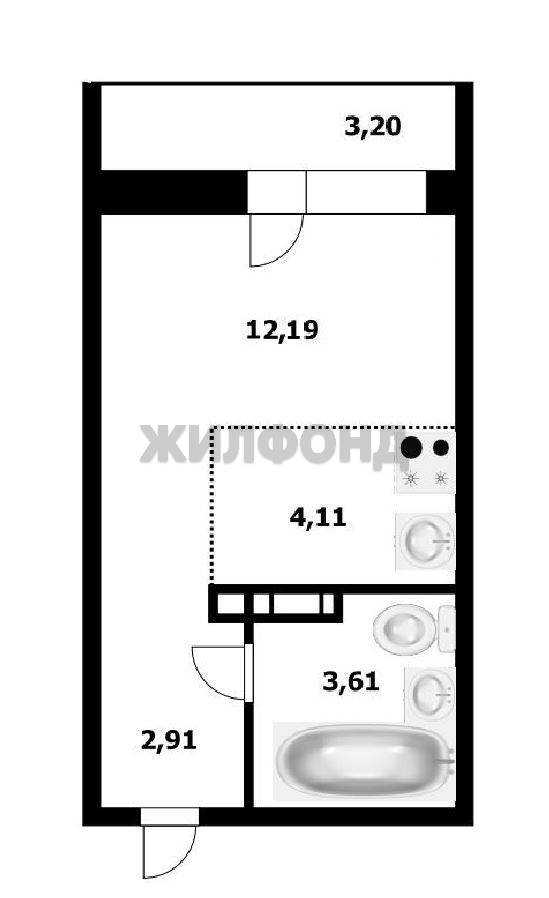 - Жилая площадь 12.3 м2