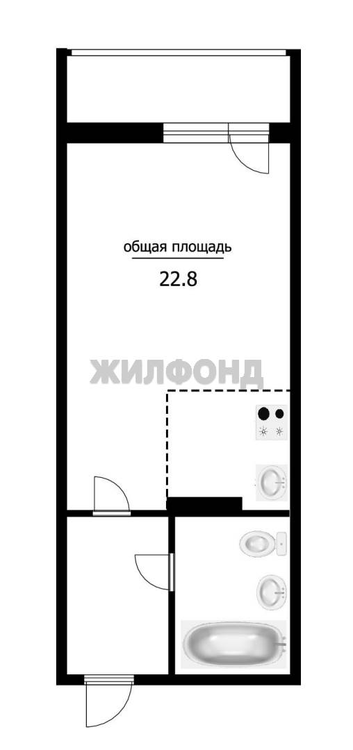 - Общая площадь 22.8 м2