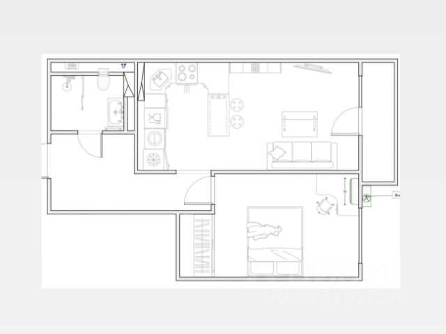 - Общая площадь 45.2 м2