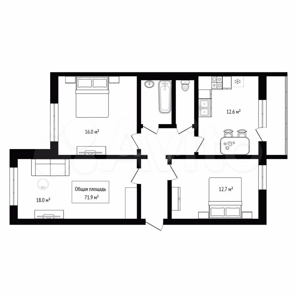- Общая площадь: 71.9 м2