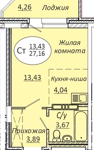 - Общая площадь 24.8 м2