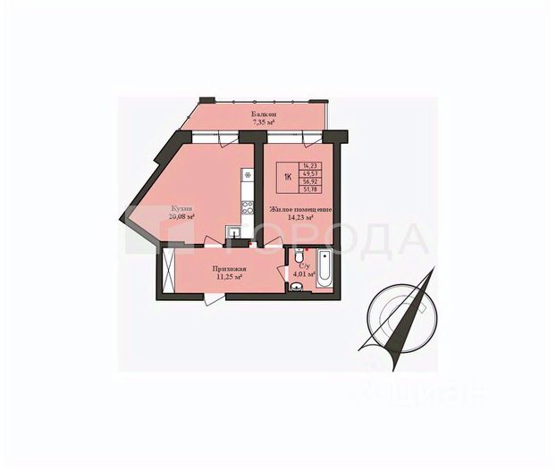 - Общая площадь: 48.4 м2