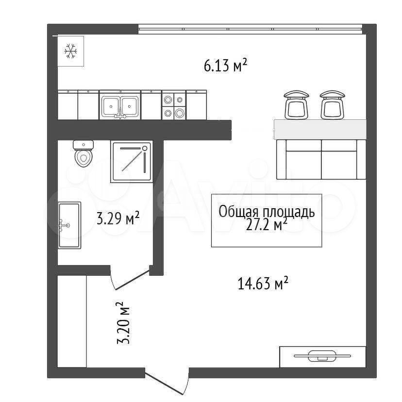 - Общая площадь 27.2 м2