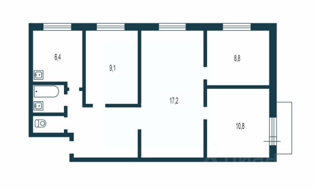 - Общая площадь: 62 м2