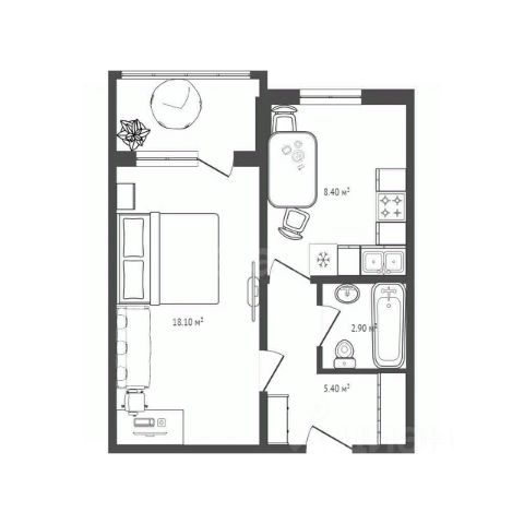 - Общая площадь: 35 м2