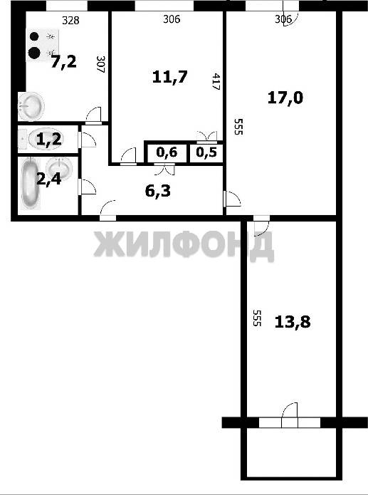 - Общая площадь: 30.8 м2