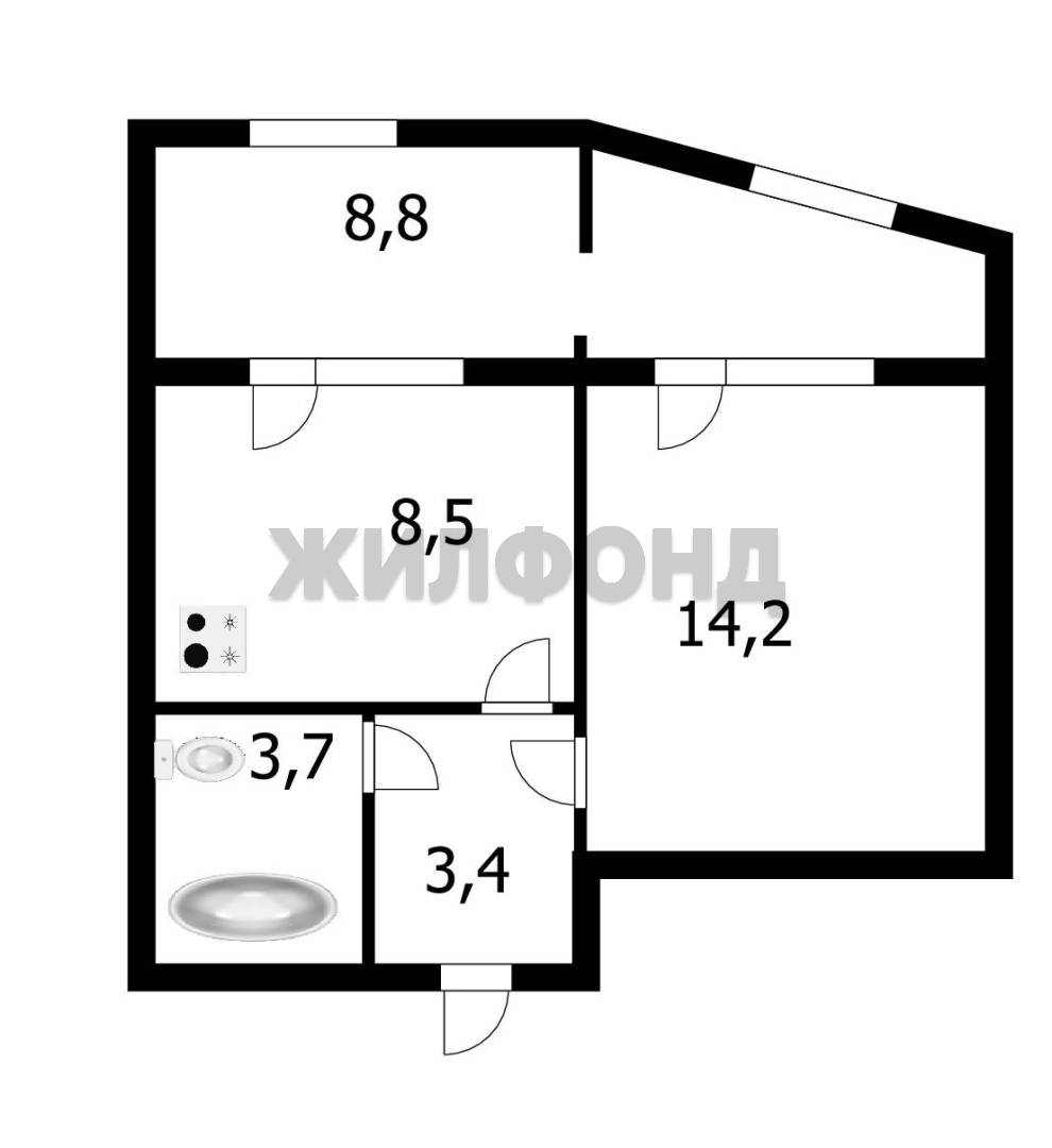 - Жилая площадь: 14.2 м2