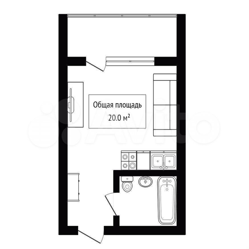 - Общая площадь: 20 м2