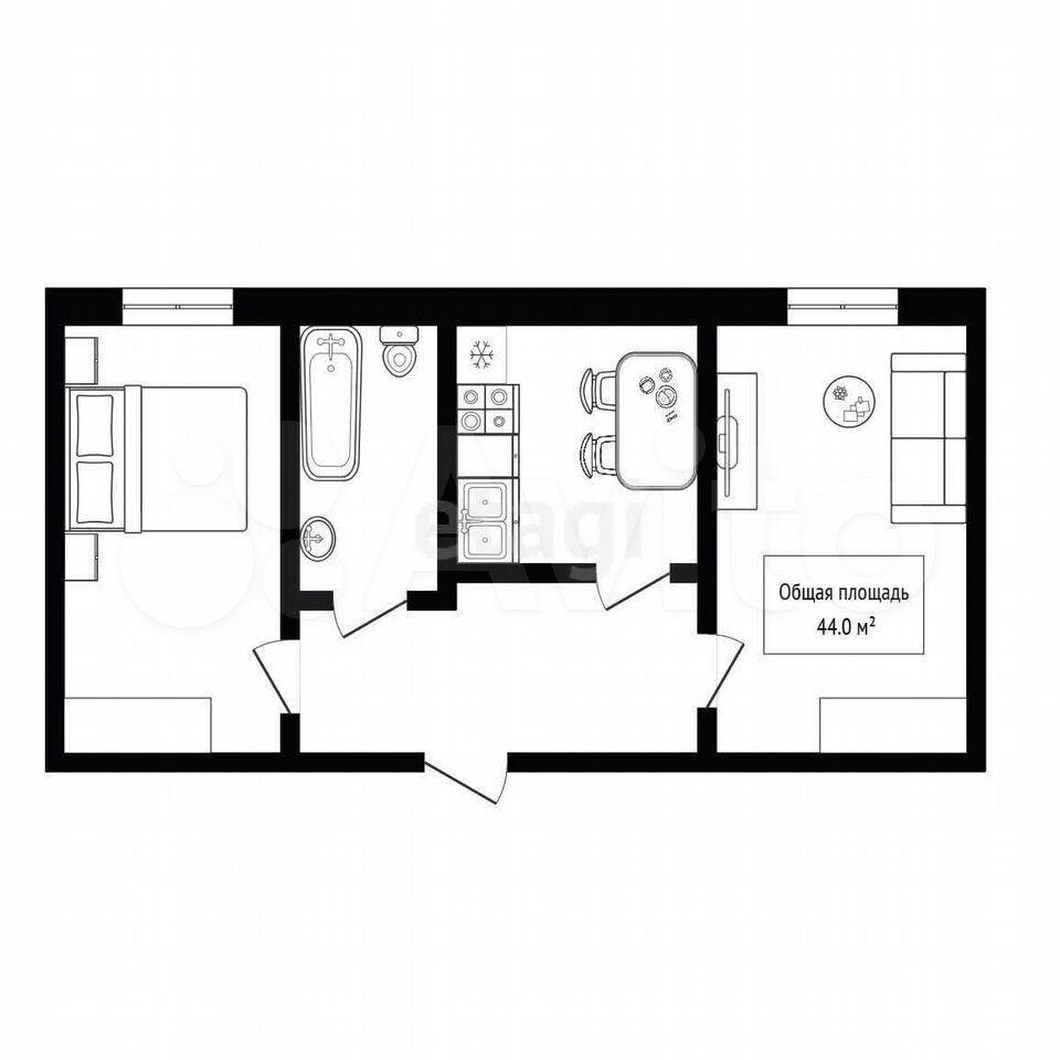 - Общая площадь 44 м2
