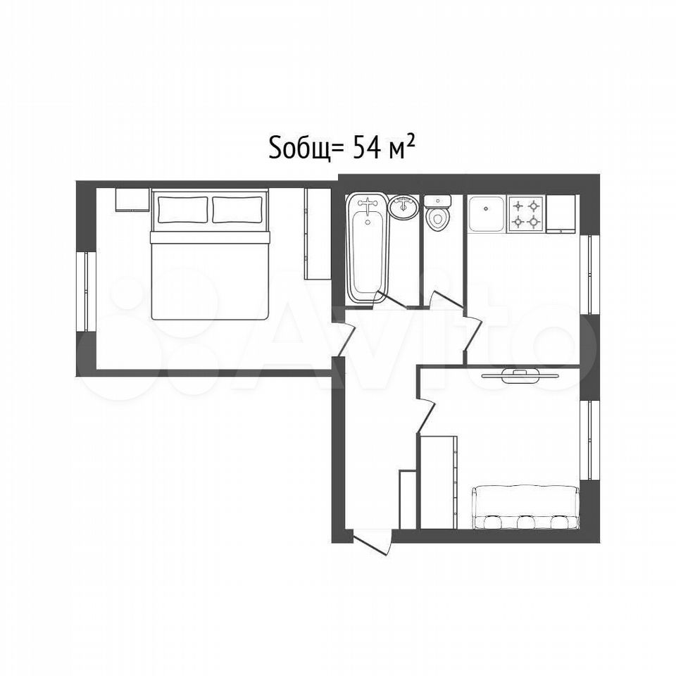 - Общая площадь: 54 м2