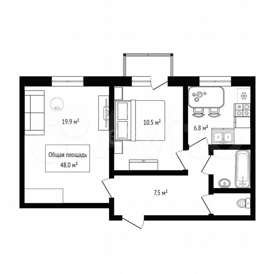 - Общая площадь: 48 м2