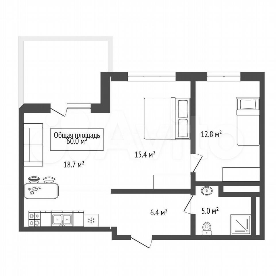 - Общая площадь: 60 м2