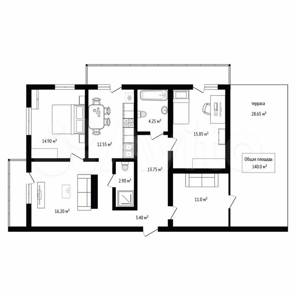 - Общая площадь: 140 м2