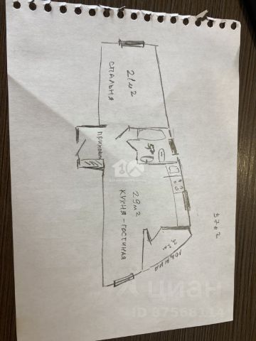 - Общая площадь: 57 м2