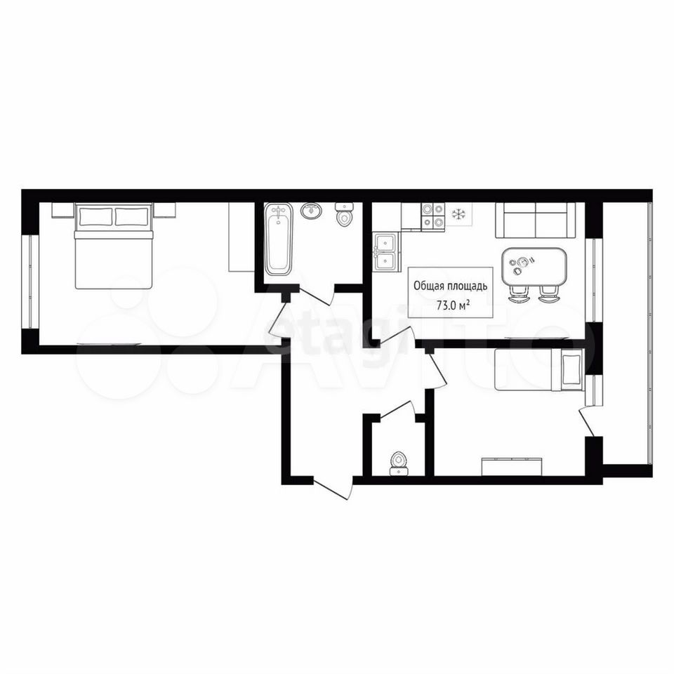 - Общая площадь: 73 м2