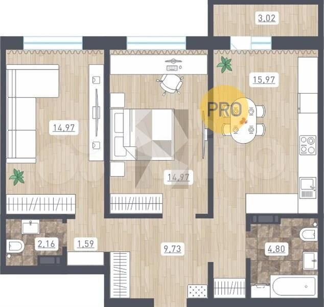 - Общая площадь 65.7 м2