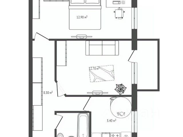 - Общая площадь: 43.7 м2