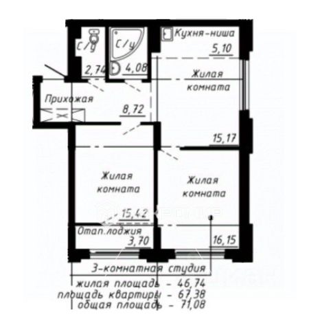 - Общая площадь: 71.1 м2
