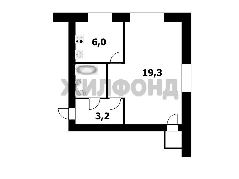 - Жилая площадь: 19.3 м2