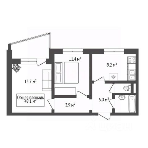 - Общая площадь 49.1 м2