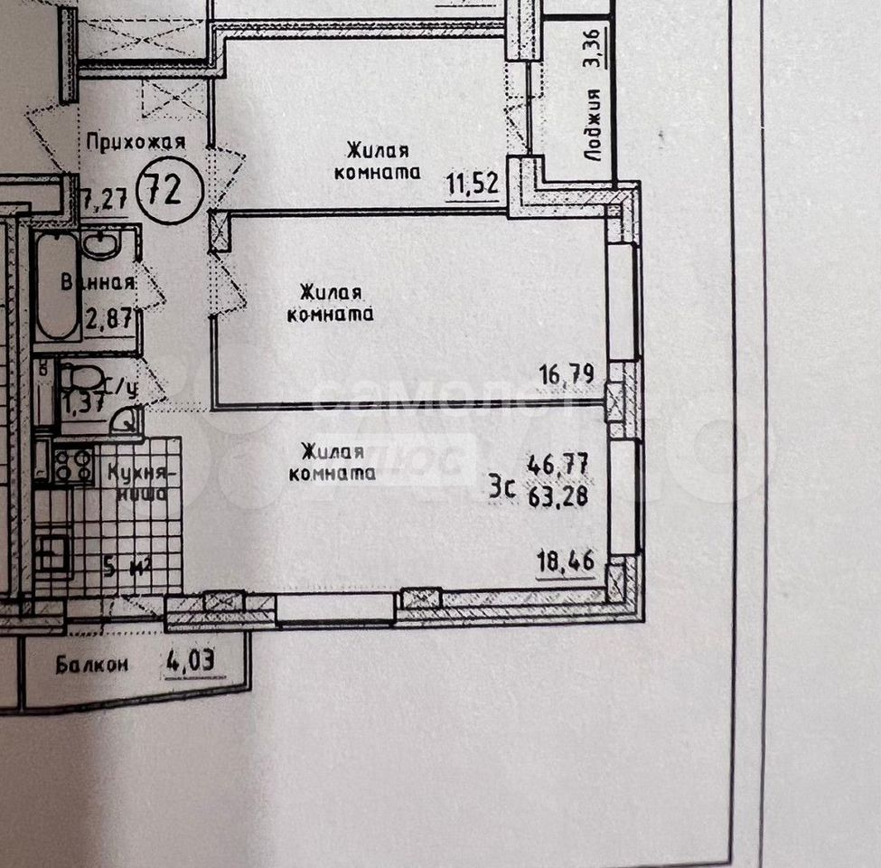 - Общая площадь: 63.3 м2