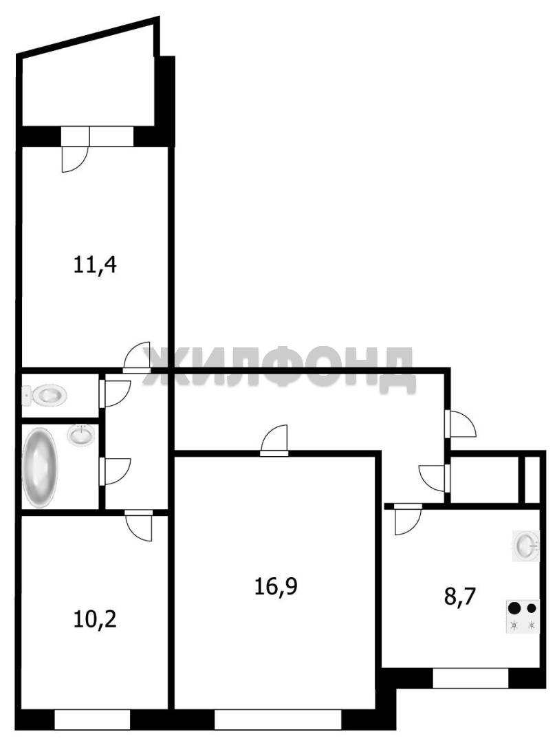 - Общая площадь: 63 м2