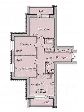 - Общая площадь 71.1 м2
