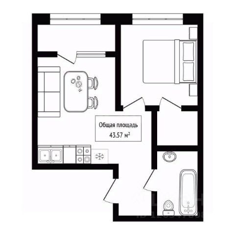 - Общая площадь: 43.6 м2