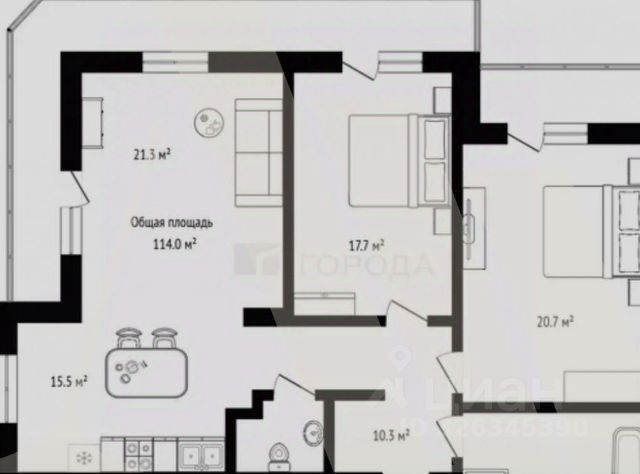 - Общая площадь: 114 м2