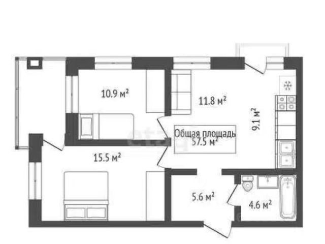 - Общая площадь: 57.5 м2