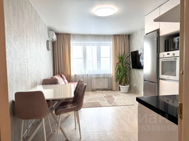 В продаже просторная уютная 3 комнатная студия в семейном районе с развитой инфраструктурой. Отлично подойдет для семей с детьми. Рядом школы, детские сады, гипермаркеты, остановки большая поликлиника. Большой красивый двор без машин, обеспечит комфортными прогулками. Окна выходят на две стороны (во двор и на большую парковку). Квартира светлая , но не жаркая. Концепция дома -умный дом, что позволяет экономично расходовать энергию. Квартира обладает стильным и современным дизайном, создающим атмосферу комфорта и уюта. В гостиной выделено две функциональные зоны: зона отдыха и обеденная. Шикарная глянцевая кухня со встроенной техникой (духовой шкаф, варочная панель и посудомоечная машина- вся техника новая). При договоренности оставим холодильник, микроволновку и диван. Фурнитура Блюм. Столешница и мойка-настоящий камень! Кухня дорогая, функциональная и очень красивая. К крану подведена фильтрованная питьевая вода. Кондиционер новый ставили летом 2025 года. Пользовались всего несколько раз. Ремонт в гостинной сделан. Хороший толстый полукоммерческий линолеум. 2 коридора с ремонтом -декоративная штукатурка Сахара. Шкаф-гардеробная с зеркалами, что визуально увеличивает пространство. Санузел и ванная комната разделены. трубы все зашиты. Счетчики прошли поверку в январе 2026 года. 2 изолированных комнаты. Большая лоджия. Утепленные пол и стены. Подъездная площадка большая на 4 квартиры. На лестничной клетке у вас будет место под хранение. Квартира грамотно зонирована, что обеспечивает много свободного пространства. Ремонт делали для себя, поэтому выполнен из качественных материалов с большим вниманием к деталям. Местоположение квартиры также является преимуществом! Она находится в современном районе с развитой инфраструктурой, что обеспечивает легкий доступ ко всем необходимым удобствам и услугам. На районе есть абсолютно все для комфортной жизни. Остановки общественного транспорта готовы вас доставить во все направления города. Не упустите шанс стать счастливым обладателем этой замечательной просторной квартиры! 2 собственника / квартира куплена от застройщика/ мат.кап использовался/ обременения нет. Показ по договоренности. Быстрый выход на сделку. Рассмотрим все варианты расчета. Просьба риелторов в помощи при продаже не беспокоить. Только с реальными покупателями. Звоните! Записывайтесь на просмотры! Есть торг. Все обсуждаемо. Но с предложениями с заниженными ценами-не беспокоить! В данный момент в квартире проживаем.