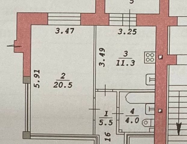 - Общая площадь 41.3 м2