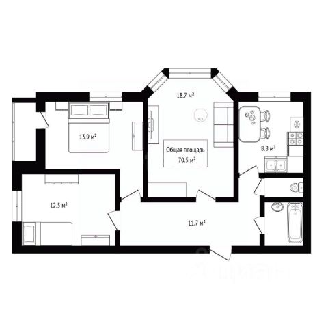 - Общая площадь 70.5 м2
