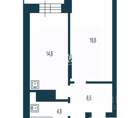 - Общая площадь 44.1 м2