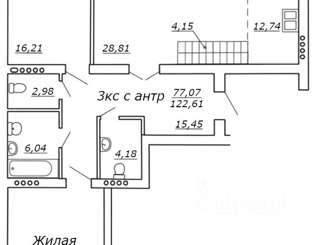 - Общая площадь 122.2 м2