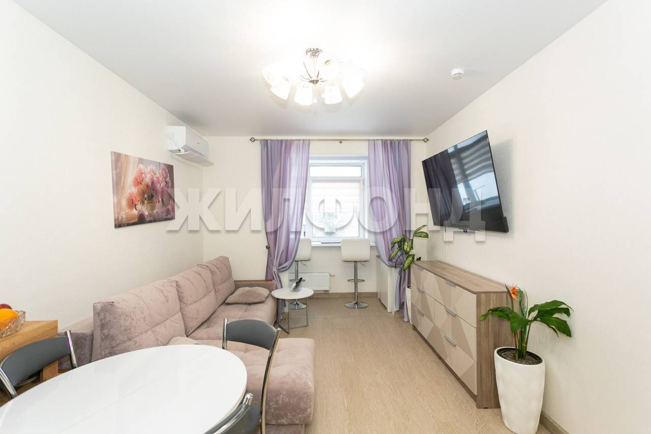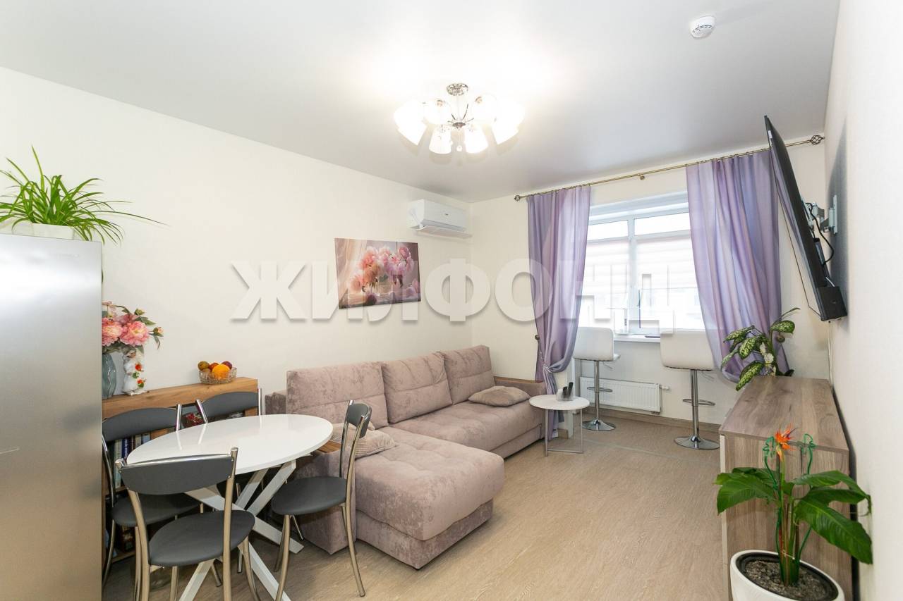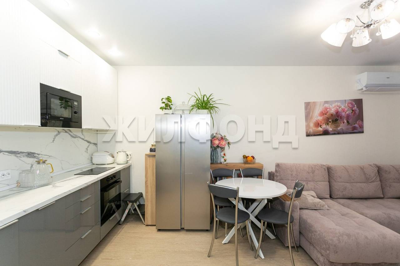 2 комн. квартира по ул. Ясный Берег. Общей площадью: 42.50 кв.м. Продается отличная 2-х комнатная квартира с видом на реку в Новом современном ЖК Город парк - Ясный Берег. Это идеальное место для жизни с потрясающим видом на реку и французским балконом с панорамными окнами. Дом на первой линии у реки Обь. Вид не будет загорожен со временем, что важно в современных реалиях строительства. Свежий современный ремонт, удачная планировка и комфортное место для жизни со всей необходимой инфраструктурой. Квартира идеально подходит как для собственного проживания, так и для сдачи в аренду. Площадь квартиры 45,6 м? с учетом утепленной лоджии. Удачная планировка квартиры, позволяет рационально использовать пространство. Просторная кухня-гостиная 17,7 м2 с современной новой кухней и бытовой техникой, изолированная спальня - 12,8 м2 с панорамными окнами в пол и выходом на французский балкон с красивым видом на реку. Комфортный совмещенный санузел - 4,6 м2 с ванной, гардеробная комната - 2,3 м2 с удобным хранением и просторная прихожая. Современный ремонт в базовых светлых тонах - как чистый холст для ваших новых дизайнерских решений. Обои под покраску готовы к новому цвету. Натяжные потолки - всегда можно изменить освещение и создать новые световые сценарии. В санузле керамогранит с текстурой мрамора - вечная классика, которая идеально сочетается с интерьером в современном и классическом стиле. Квартира, полностью меблированная новой современной мебелью и оснащена новой бытовой техникой, которые приобретены в апреле-июне 2025 года. Стильная современная кухня и качественная мягкая мебель - диван, кровать и прикроватные тумбочки с антивандальной обивкой. Все необходимое для комфортной жизни уже есть и ВКЛЮЧЕНО В СТОИМОСТЬ. Выполнен свежий ремонт с использованием качественных современных материалов. Установлены тёплые полы. В каждой комнате установлена Сплит система, управляемая через приложение умный дом по WI-FI. Установлены качественные окна RЕHАU, на гарантии 3 года. В квартире установлен WI-FI, подключенный к Электронному городу. Через приложение есть доступ к камерам, установленным по всему периметру дома: доме, лифте, парковке. Окна квартиры выходят на благоустроенную закрытую территорию с видом на реку Обь и Димитровский мост. Потрясающий вид из окна на город вечером не оставит равнодушным никого. Домофон работает через приложение, можно открыть с любой точки мира. ЖК Ясный Берег - идеальный район для жизни семьей. Это благоустроенный город в городе, продуманный до мельчайших деталей: красивая центральная набережная микрорайона, пешеходный бульвар. Все необходимое рядом: торговые центры, магазины, аптеки, кафе и рестораны, фитнес центр, образовательный парк, аквапарк, каток. Документы готовы к сделке. Реальному покупателю- ТОРГ!! Возможен обмен на вашу недвижимость. Возможна продажа в рассрочку. При звонке, пожалуйста, сообщите номер варианта - JV002054174866